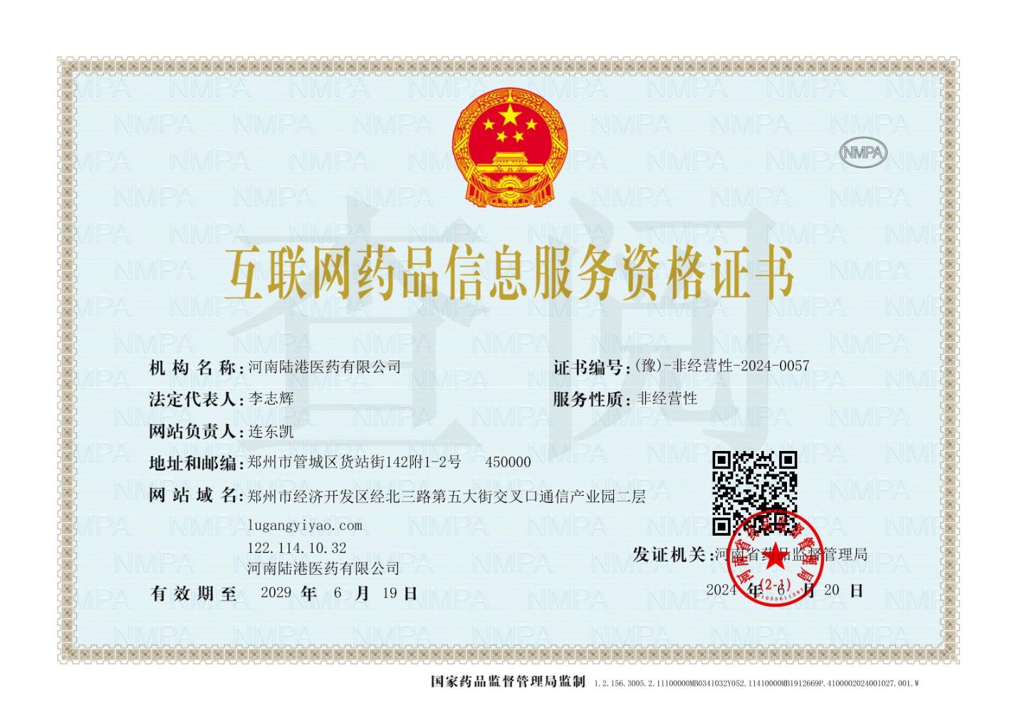 互联网药品信息服务资格证书 (豫)-非经营性-2019-0046 Copyright © 2018 河南陆港医药有限公司版权所有. All Rights Reserved